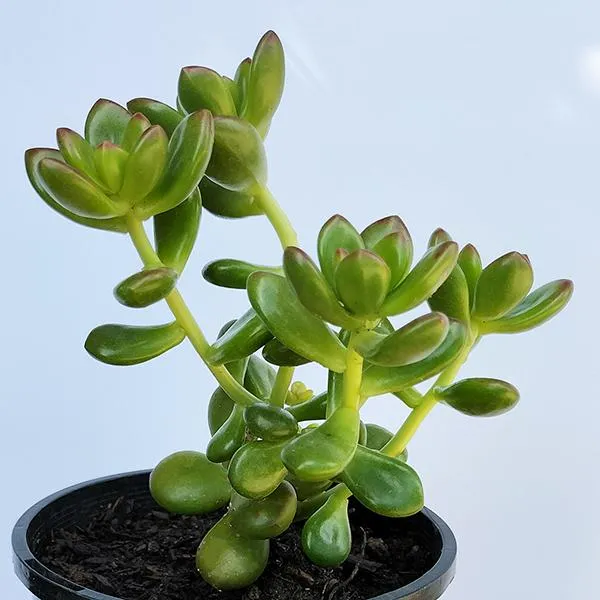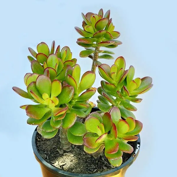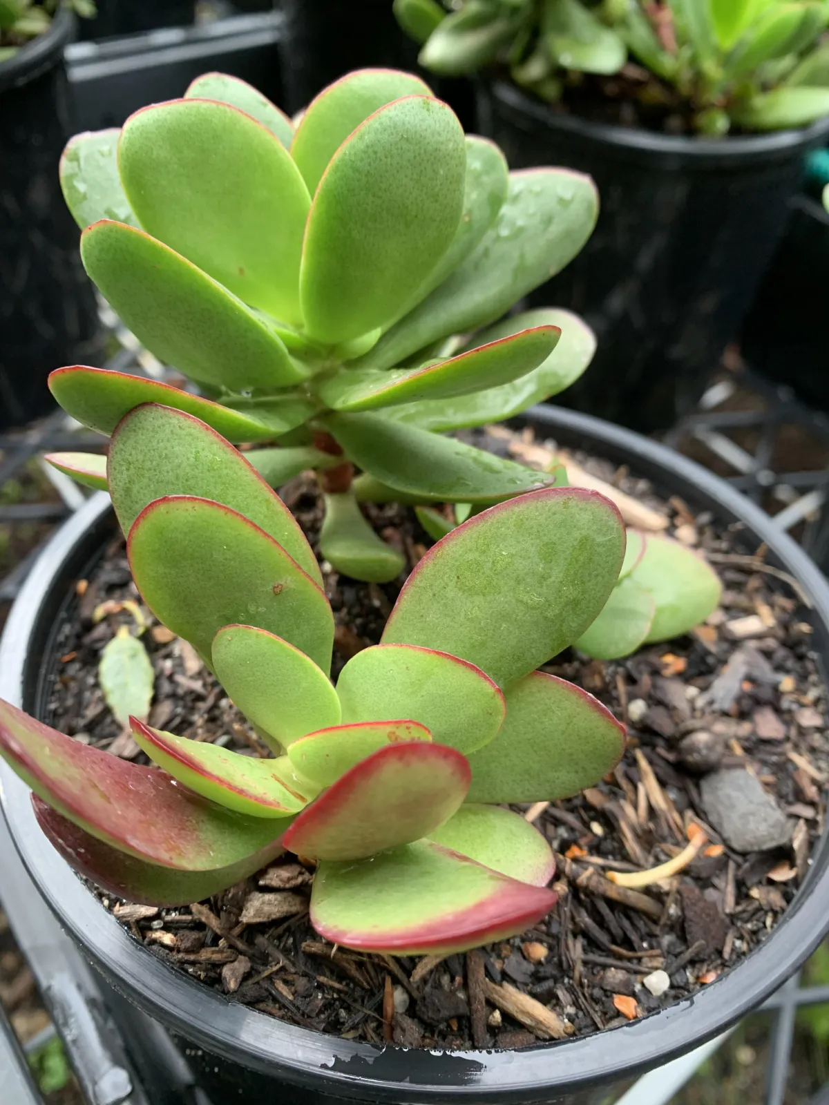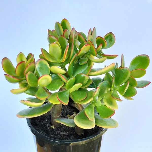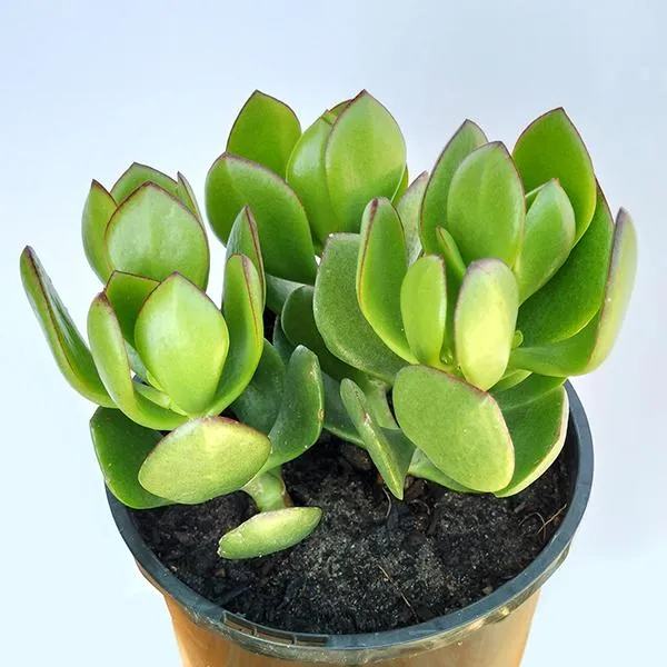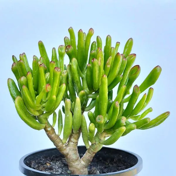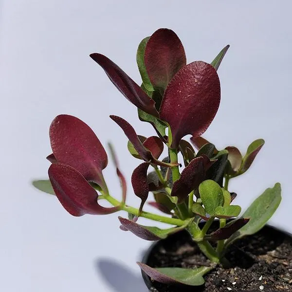 Deep green pointed leaves with purple margins at times, make this a very attractive form of the jade tree.