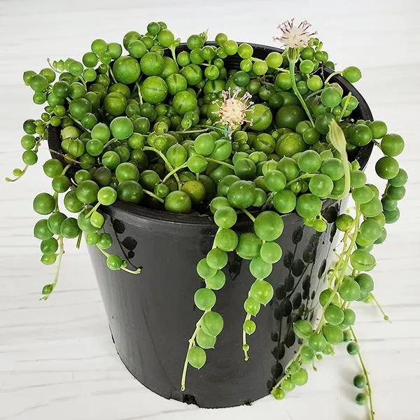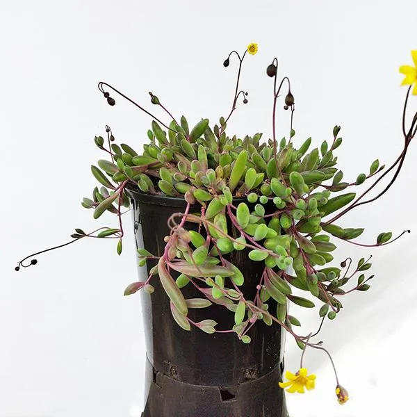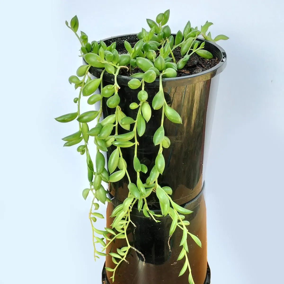 Cascading plant for pot or hanging basket, with decorative round, pearl shaped leaves.