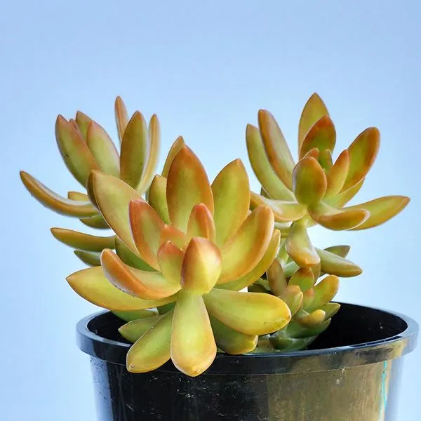 Drought tolerant, surviving months without water. Go on holiday any time of year and forget watering. Great for pots in this way.