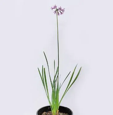 Lush green strap foliage all year, purple/maroon umbel flowers in flushes through most of year.
