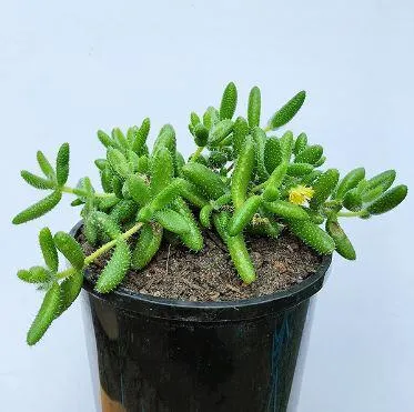 Small cylindrical fleshy leaves, with small yellow flowers in summer.