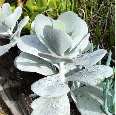 Good coastal plant that can grow in excess of 1 x 1 m wide, with fresh green rosettes 20cm across, on long stems.