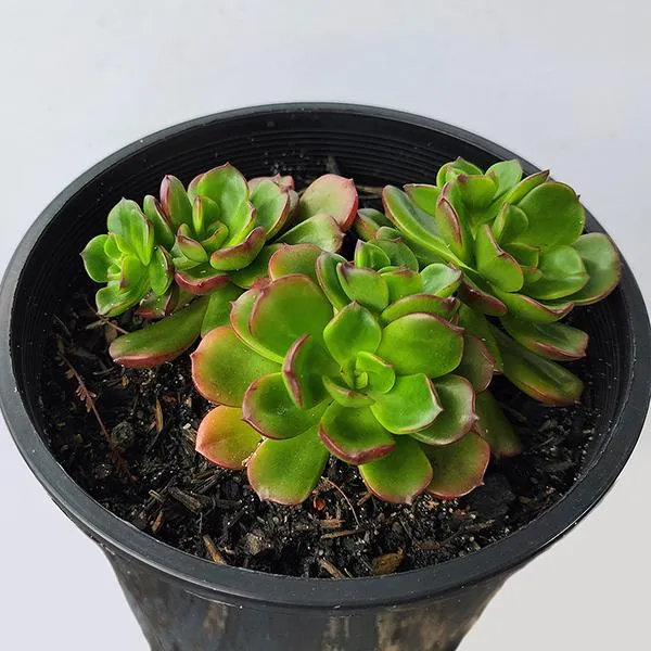 Can grow to 1m x 1m wide, branches terminate with dark red/purple rosettes 20cm across.